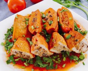 Đậu hũ nhồi thịt sốt cà là một món kích thích vị giác và giàu dinh dưỡng. Với món ăn này, khi dùng với cơm trắng, bạn sẽ cảm nhận được vị chua chua ngọt ngọt của phần sốt cà cùng với vị đậm đà bởi sự kết hợp giữa đậu hũ và thịt heo.