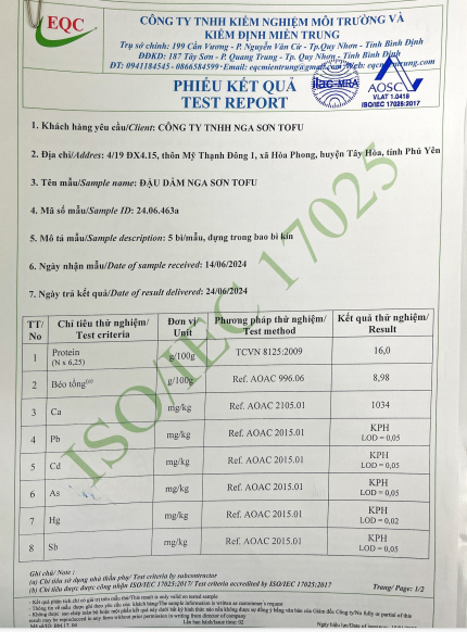 Đậu dầm Nga Sơn ToFu bao gồm các thành phần như đậu nành, gạo nguyên cám, nước, muối biến. Đậu dầm có vị béo từ đậu phụ, có vị ngọt tự nhiên từ bột đậu nành, gạo nguyên cám, có vị mặn mặn từ muối biển tạo vị món ăn rất hấp dẫn. Hàm lượng dinh dưỡng rất cao và thích hợp cho khách hàng ăn chay hoặc mặn
